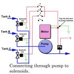 The wiring is done so it goes to the solenoid to the pump. Once a tank is selected and turned on the solenoid will open at the tuning on of a tap. Not only can I now control every tank separately, I can say empty one tank and if free camping just fill it from a river with out interfering with drinking supply.