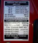 The only figure in my graph I am not 100% sure about is the gross combination mas weight, to me is the important one, that 5510kg could possibly should read 5810kg in all the Nissan paper work, reading webb sites, sales brochures its not mention. That gives me heaps, maybe I might take me bike with me, the expresso coffee machine, buy a kayak.