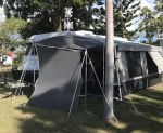 The first annexe I had was actually made by the people that I bought from and I was very happy with it except for the fact that it was made to the roll out width of the awning at 2.2 meters and not 2.4 as is required at most caravan parks with concrete slabs.