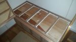 the middle storage area door/cover will have gas struts fitted after to help with lifting when the mattress is in place. the last pic is of the passenger side rear storage compartment the white stuff you see around is a silicon type bonding stuff called tool box made by Fuller it works well, even though i have glued the panel and frame together i still like to put the toolbox around areas like that as insurance as i don't want to staple the panel on and once the top panel is fitted it will be hard to fix back in place if i ever have to. when i have finished that i will be putting the insulation back in and hopefully get the exterior cladding and fitting that. Oh by the way i have checked out the sirocco fans and have decided to purchase two of the fans thanks for all the input it is much appreciated.