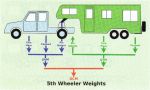 The pin weight (download on your hitch) of a 5er is 15-20% of your ATM and is included as payload. The tow vehicle needs sufficient GVM and GCM. Neither of these ratings can be exceeded.