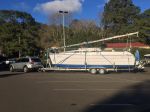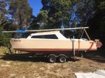 Hi All, further to my opening post. Trailer Sailers can start small with the original NZ designed Hartley 16 being a light and easily handled mostly day boat but with enough room for two to sleep under cover and with a boom tent live for short periods on board. These generally cost under $5,000. Next jump up whilst still very light to tow are yachts like the Catamaran Jarcat 6 pictured below. These are still exceptionally light to tow at under 1350kg on Trailer with camping gear on board and with a double berth and two under seat coffin berths have enough room to overnight a family with two children or a fair amount of gear for two on a multi day or even week trip. They are also pretty cheap to buy and equip at well under $20,000 and some much cheaper again. In this same price range are many quality mid sized fibreglass single hull yachts of generally elevated vintage. Many of these larger yachts fall into the over 2 tonne on trailer weight range requiring electro Hydralic Brakes. Most of these yachts are 2.4-2.5 metres wide and given a suitably capable towing vehicle these can be transported/trailed like a large caravan. The range here is huge whilst most of the yachts themselves are fairly old in both design and sometimes condition. Finally there are a range of large newer yachts which tend to cost $30-90,000 unless purchasing New where they are even more expensive. Opinions in the yachting community about the merits of various designs are often more strongly held I feel than in the caravanning/motorhome community and often based on sailing performance or offshore capability which have much less relevance for semi live on board Grey Nomading. The hardest trick I have found is to find a partner who likes messing around in boats and can tollerate being in a small space surrounded by water where escaping from each other is more challanging than disappearing off for a walk or similar.