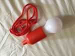 look what we got given to us. Its a light. You tie it to something Say a door handle. When you want to turn it on you hold the red bit and push down. Push down for on n then push down again and it turns off. Runs on 3 tripple a batteries. Light weight. Genius.