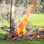 Sheesh That's freaky, a man in work reflective clothing standing behind fire looking at mobile phone?