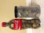 Got the Laundry money sorted. Amazing how quickly it adds up from loose change. 600ml Coke holds $860 in $2 coins and the fruit vessel hold $330 in $1 coins. Hope I have enough to keep me in clean undies for a while.