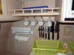 It has the advantage that the items are readily at hand and are returned to their spot after use. Therefore no need to pack up when moving on.