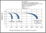 This chart is for an as new Full River 105Ah battery and gives the effect of different loads on just how long before that 12v figure is crossed and the discharge should stop if you want a decent cycle life. You can discharged them to the manufacturers fully discharged limit if you want, but the cycle life shortens severely as can be seen in the second chart.