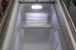 I have had a temporary piece of aluminium folded over the divide in the fridge to get the butter department cooler when running the fridge as a fridge. I have replaced it with a neater job! Works well, there is some sail cloth repair tape on the back of the aluminium so the evaporator coils don't get damaged. I used a 1.5mm thick baking tray (4028574815277) as the aluminium is a bit softer, (unfortunately not anodized but the heatsink itself has more value than being anodized) but not too soft, hopefully 1200 alloy which would be nice, which would have better thermal properties having less alloying elements, but nevertheless easier to bend by hand than 5005 alloy off the shelf sheet.