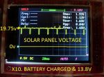 This is whats on the Solar panel leads before the regulator. When its charging theres a steady voltage. When the battery is charged the regulator is pulsing ON/OFF to give an average voltage at the battery of 13.8V.