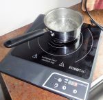 I bought a cheapy hoping to convince Margaret to install one in the OKA so I could get rid of the last gas. It was labelled at 1800W At setting 9 (out of 10) it ran very well from the 1300W inverter, drawing 131A initially and then settled down to 118A (including a couple of amps of other stuff), even though it pulled the 9 1/2 year old 460Ah of AGMs down to about11.9V. They recovered within seconds of it being turned off. It boiled a litre of water MUCH faster than our Birko electric jug. BUT it lacked fine control at low settings meaning that maintaining a slow simmer was difficult. They pulse the power at low settings. Better ones may overcome that issue which was unacceptable to the cook.