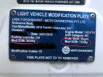 Here is the compliance plate and this comes from Lovells with all the approved necessary paperwork to have your rego papers and files updated.