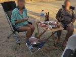 Since this photo we have bought 2 bases for sitting the chair on sand & headrest air cushions which work well, you can put a towel in the chair's carry bag which is designed to be a head cushion, either way it's nice to have. We sometimes put a foam mat on the seat for warmth. In this photo is the Thermarest cusion, but we actually prefer a bit of foam, Macpac sleeping mat cut to size.