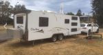 That power lead is all piled up and could burn out. Looks like grey water from the three outlets toward the rear will just run out on the ground. I reckon it is over weight too. Plus, the tug is not suitable for such a big van.