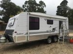 Great little Avan Sportliner, well designed, sleeps two. It folds down to a travel height of only 5' 4" and is easy to set up the pop up roof ( has standing room of 7'10"). It is only 8' 9" long. It has Aircon (reverse cycle), hot water, gas stove, sink and 90 ltre 3 way fridge, 63 ltr water tank and cupboards, so you can go away for a week or just a few days in comfort. You even have your own external shower. Also has a 80 watt solar panel, a 12v battery system and plenty of LED lighting inside. It weights only 680 kg and has a 60.kg ball weight so its easy to tow and adjust into place. it has electric brakes and independent suspension and shocks. An ideal get away van at around $18K www.caravancampingsales.com.au/items/details/2016-avan-sportliner/SSE-AD-6325584/