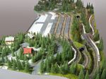 It's tiny, 2.7m long x 0.85m wide, Z gauge.The hills lift out either end for access for derailments.