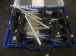 The first issue came with the adaptor to fit the drill. I have them but don't use them, I think they are excess baggage, all these devices depend on the type of terrain, and I find the standard peg, with another crossed over it does all the required jobs, except sand. Sorry about that all, but I am on the road full time, and so far have not had success with them.