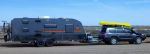 He was towing a sizeable dual axled van, had a fold up trailer on the back of it, outboard motor fitted on the A-frame & a plate 12'6" aluminium boat on the top of his Toyota 100 Series wagon!!