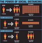 Similarly, in the first case the number would be 3.5 ^ 6 = 1838. Clearly there are mitigating factors at play. No doubt the most important of these would be the "sociability" of each infected individual. Less sociable people would be less likely to pass on the infection, irrespective of the social distancing standard. Clearly this demonstrates the benefit of isolation.