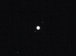 I got a photo of Jupiter & 3 moons, & Saturn (not on this cropped photo). On 22 December they will be at their closest point, in western sky as it gets dark look up a bit. I also have 18 x 50 binoculars & can see the moons. With my 7 x 50 binoculars I can't see the moons.