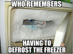My shed fridge is around 45 years old, only 110 litres, took a day and a half to defrost recently, forgot about it. I have measured its electricty use -age though and still as good as a new one, and more space inside somehow.