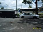 The Commodore has been fitted with lowered springs and they were always a bit soft in the back end so really no suprise there. Unless he has an enormous amount of gear on board, with that little Millard van the Commodore under normal circumstances should tow it quite comfortably, but if you are going to lower it then this is the end result.
