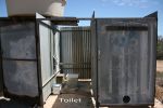 I have been studying the "Ėngineering" of the unique ablutions hut. I note the "Southern Cross" branding on front of door (a great Australian company). I assume the flat gal sheets were originally the envelope (tin-box) sheets that the corrugated gal sheets were in when originally delivered, I used to utilise these sheets for making useful metal things myself (still have a toolbox in the shed) - waste not, want not. As it was about 24# SWG it was considered rubbish by most, it was greedily accepted by this young teenager for many projects including several tin canoes.