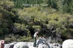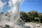 Lady Knox Geyser,at Wai - O- Tapu, 27 km.from Rotorau, the ranger puts soap flakes down the geyser to get it to erupt.