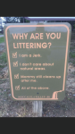 Wanda wrote:Ivan 01 wrote:Wanda wrote:Signs like this may have better results than the standard Do Not Litter/Put it in a Bin signs Cheers Ian Got to agree there Wanda.It would be interesting to test the results of such a sign. No Ivan, thats just my misguided belief on the subject of litter !CheersIan