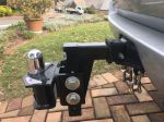 The new shank also looks a lot closer to the rear of the car rather than a footy field away. I dropped the hitch coupling on the new shank to the 2nd hole with the top of the ball possibly as much as 25mm below the underside of top of receiver. Previously the ball was 15mm above this reference. So possibly a drop of 40mm in the ball relative to the underside of top of receiver. Those with an E2 hitch would be aware dropping a ball that much will probably require changes to the tensioner tie arms as well to ensure the right tension, but more particularly, that the tensioner bars remain horizontal to the caravan chassis with the tensioner head now lower. I removed a washer to bring the ball pitch more in line with the plane of the car's receiver.