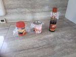Few, if any, of the containers in which we purchase foodstuffs today are airtight once opened. For many foods which are consumed quickly this doesn't matter but for long lasting items such as stock powder, cooking sauces and the like it does. If exposed to air (oxygen) for a long period many of these items will grow mould, lose their taste or absorb water and solidify (stock powders). Some years back I started using clingfilm to seal the lids of such containers; all you need to do is tear off a few inches of clingfilm, fold it over one or two times, place it over the food container opening and replace the lid thus crushing the clingfilm between lid and container and making an almost airtight seal and vastly improving the shelf life of products - see pic below: