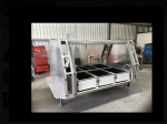Thankyou for your concern about my safety, but I am well aware of the physics involved when there is a high centre of gravity. However, you no doubt would understand that 70kg on the well-built canopy roof of a 3600kg car would be of little concern? All other added weight is stored safely on or under the false-floor tray while there is 120 litres of water in tanks directly behind the cab and under the false floor that sits above the 6 slide-out toolboxes. There also are another 3x20 litre drums on their sides at the rear under the false floor if needed, but they are yet to be filled. Because the van has hot water supplied by the diesel heater, this poly tank is used only when the van is not with me, so that when I need hot water I simply pump water from the two tanks behind the cab up into the poly tank. Tanks, bladders or other containers on the tray no doubt suit some, but very hard to heat water there, and useless for showers without extra pumps etc. Keep it simple. You might be interested in these overloaded roofracks? The Pajero's load would be 150+kg while the I'd hate to think what was the load on the Patrol? Whatever it was, the Patrol seems to have bucked it off? They certainly would make the cars stupidly top-heavy, but my setup is of little concern. Cheers