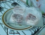 I reckon... either defrost in the fridge over 24h (best) or do it quickly in the microwave or in a ziplock bag in warm water. The less time bacteria have to multiply the better.