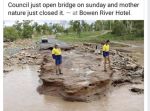 Just to continue on how well our money is being spent on road construction for those with subscriptions to the courier mail or the Whitsunday times google the story of the bridge at the Bowen River being completely washed away 10 days after its opening.