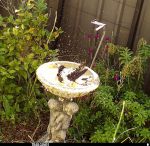 "Our " two magpies have taken to the bird bath, use about 3 lites of water every second day.