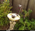 "Our " two magpies have taken to the bird bath, use about 3 lites of water every second day.