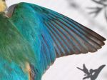 This is unfortunately from a dead King Fisher which we found, the colours looked like they glowed in the light. The photo doesn't do a fraction of the justice of the feathers in real life.