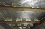 Air Cell off a building site. Can be cut to any size, double wall, pink on one side, silver on other, foil separated by about a 10mm "wall " makes little pockets, very durable, I have an off cut that is nearly 4 years old, in sun every day for windscreen.