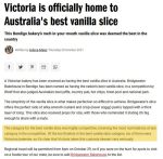I consider myself a connoisseur of Vanilla Slices and I recommend Dirranbandi Bakery in Queensland near St. George. It is on my bucket list to return to, hopefully this year after flood, fires and covid have subsided. On our first and only visit to Dirranbandi in 2018 we bought one to have with coffee and they were so good we bought a heap to take away and enjoyed them the rest of the week. I just hope the bakery is still there and the vanilla slices are still as magnificent.