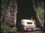 Circa 1970 solo half lap of oz in EH panel van fitted with 27 gallon fuel tank. Mattress and sleeping bag in back. Kitchen in front passenger seat. The p'van is pictured inside one of the trees in the Valley of the Giants south of Perth WA.