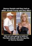 I think the big Don was thinking with the brain in his smaller (just assuming ) head when he became associated with her and by paying her off thinking she was going to keep her huge lips sealed.To coin a phrase I think he was sucked in.