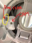 As you can see in T1 and T2, the cam (this is the small part with teeth and is held by a Philips head screw in the middle) for the toilet cassette has the teeth half way set in the ring gear which is attached to the toilet lever inside the caravan. I have shown both pictures for clarity and parts identification. This is the incorrect position. The toilet was jammed and would not open the toilet sliding cover or cassette sliding cover fully. With the lever fully to the right the cassette could not be removed but the sliding covers were not open either.!