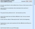 The posts I find difficult are those with multiple lines of content in one large paragraph. That may be OK for a novel but I believe most like to see online content broken into smaller chunks. I note on other threads there are a couple of such posts this morning. Break them into smaller chunks but never mid sentence.