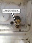 The brass fitting is brand new and replaces the convoluted black plastic fitting that was originally there... it screws into the grey metal fitting that is connected directly to the van. I hope the attached pics make it clearer :)