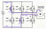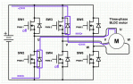 Pick any two phases, follow the current path through the corresponding upper and lower phase driver, then switch off these two phase drivers and follow the path of the decaying current through the diodes in the phase drivers in the opposite side of each H-bridge.